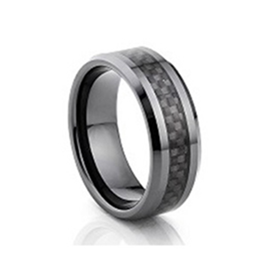 Polished Tungsten Ring with Carbon Fibre Inlay